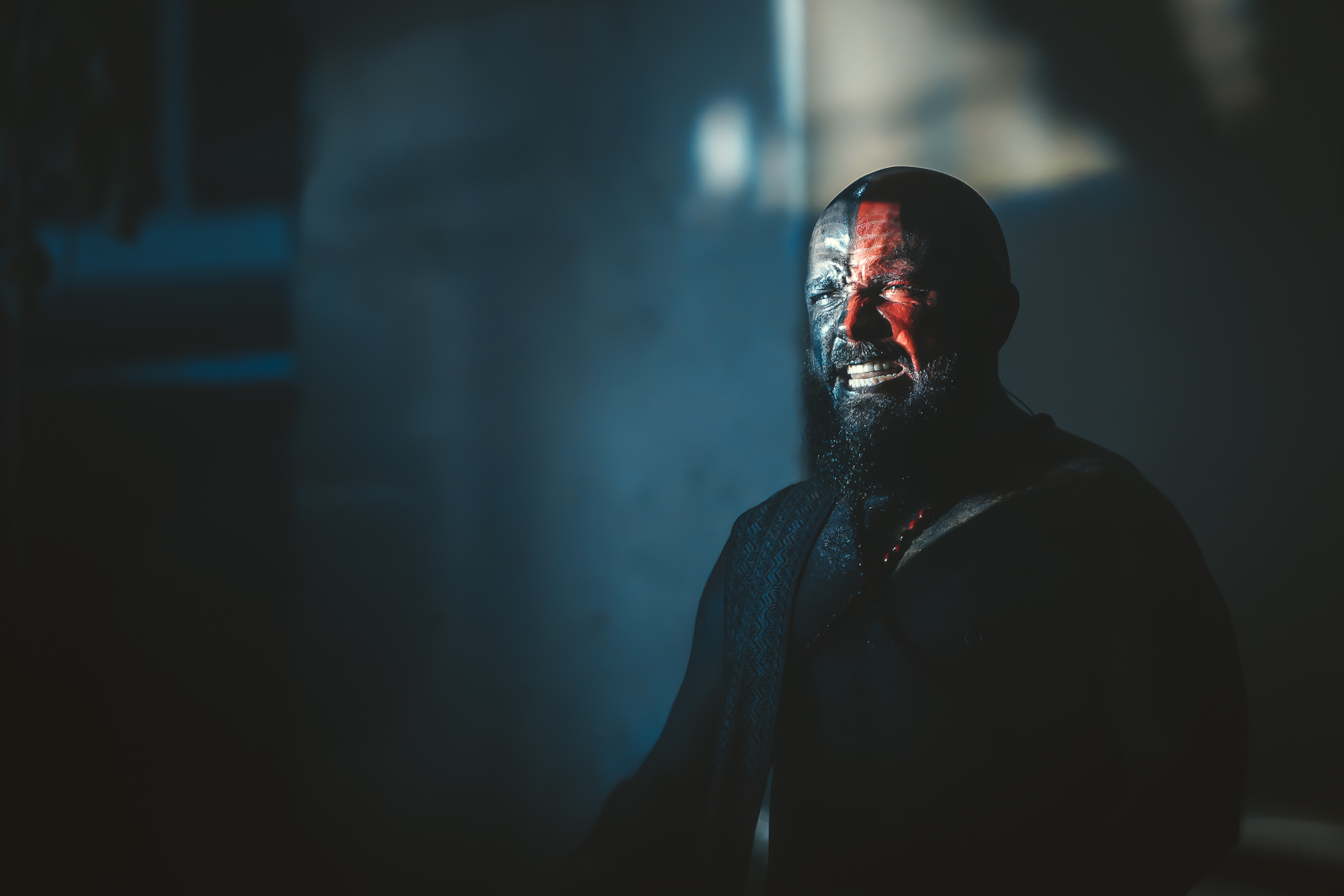 Then came the much-anticipated ritual to kick off HEILUNG’s set. Kai Uwe Faust stepped forward barefoot, carrying a bowl of incense. He sprinkled smoke across the drums and around the stage. Maria Franz joined him, her presence calm and commanding and the dancers and “warriors” in tribal paint moved in slow circles, shields in hand. The smoke curled around them, and the lights shifted just enough to make you feel you’d slipped through time. When the ritual settled, they launched into “In Maidjan,” and the hall went still again, that first drumbeat echoing like a heartbeat.