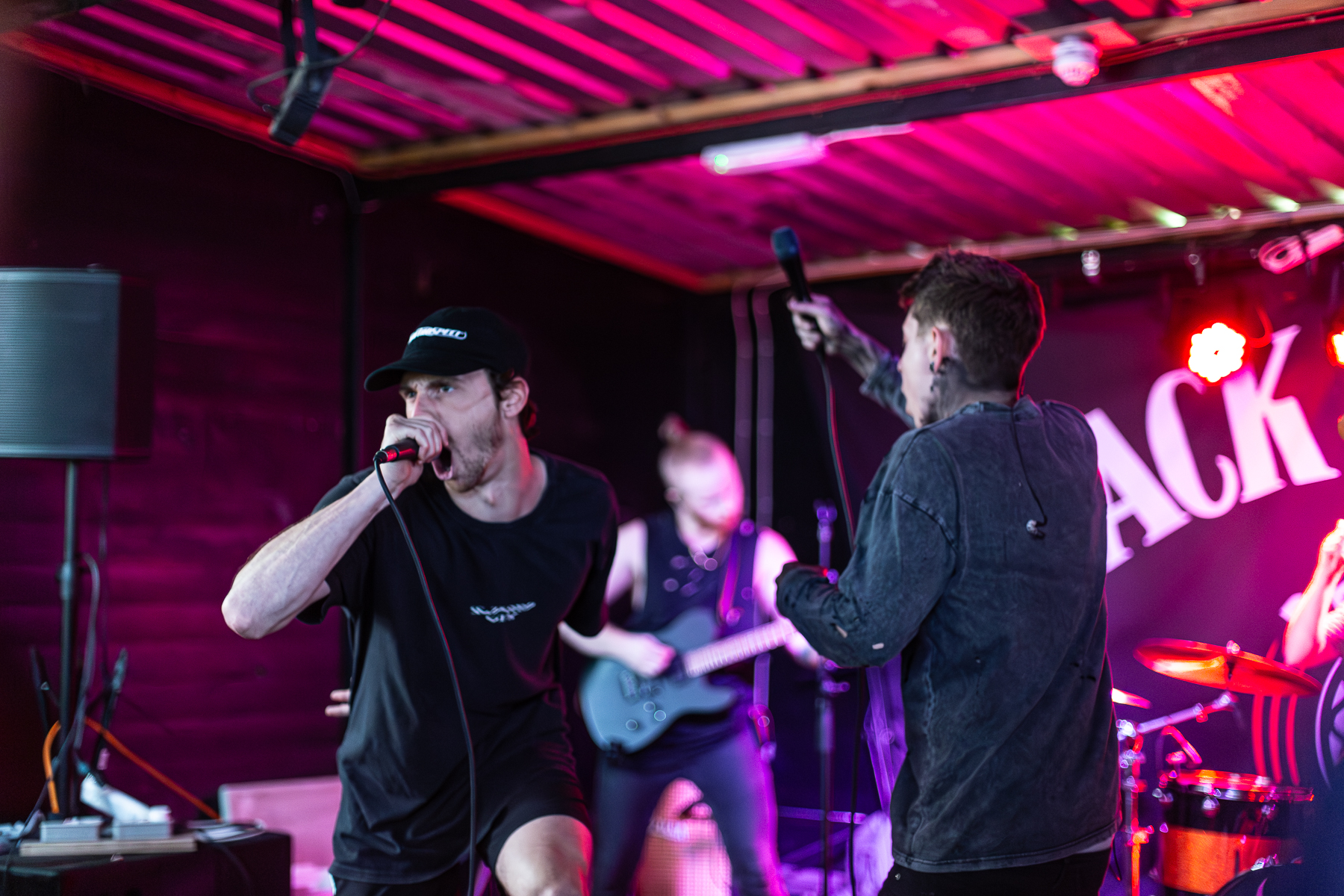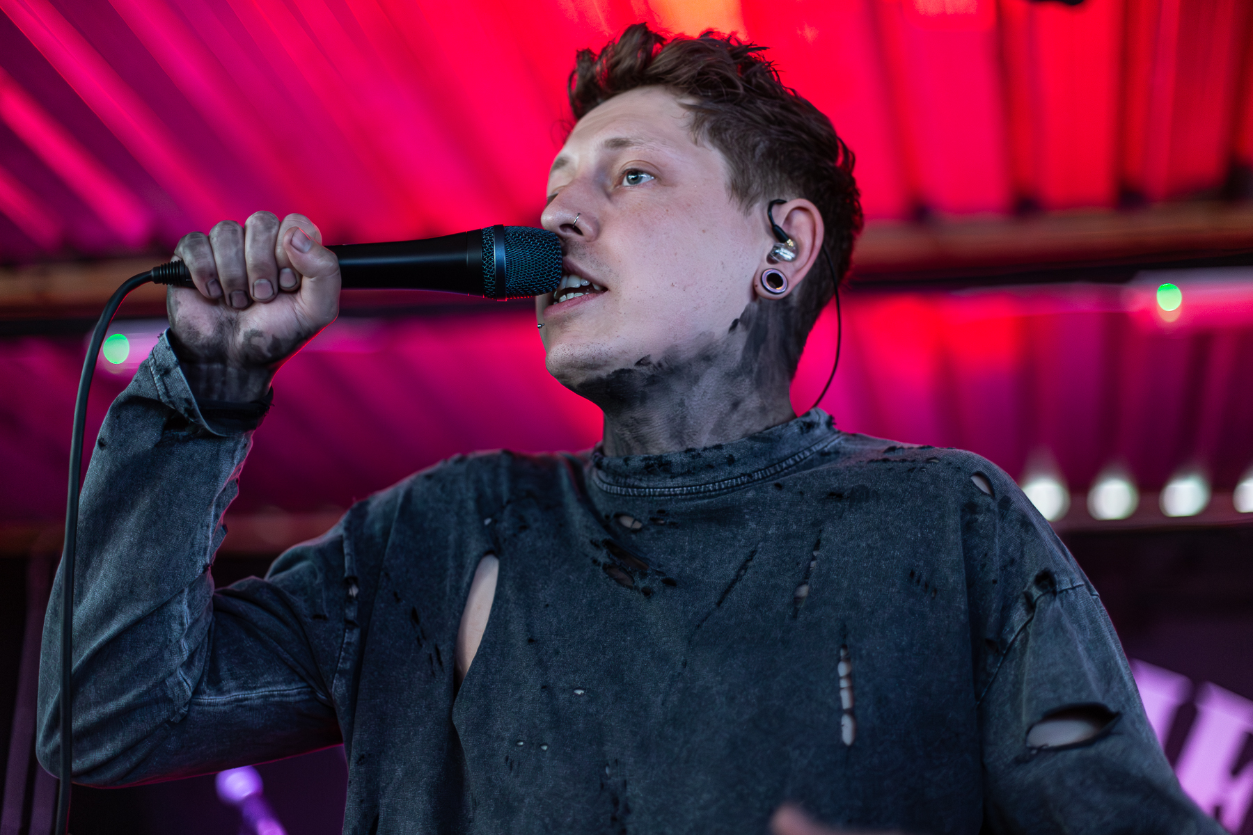 Manchester big hooks and bigger breakdown hardcore band Aleya takes to the stage after a small technical difficulty (would it be a festival without one), but that doesn’t stop them from bringing their high-powered set to the stage with jumps and audience anticipation of screaming back off when the lights go out. With our first mosh pit of the afternoon and joint onstage vocals from Blank, the festival