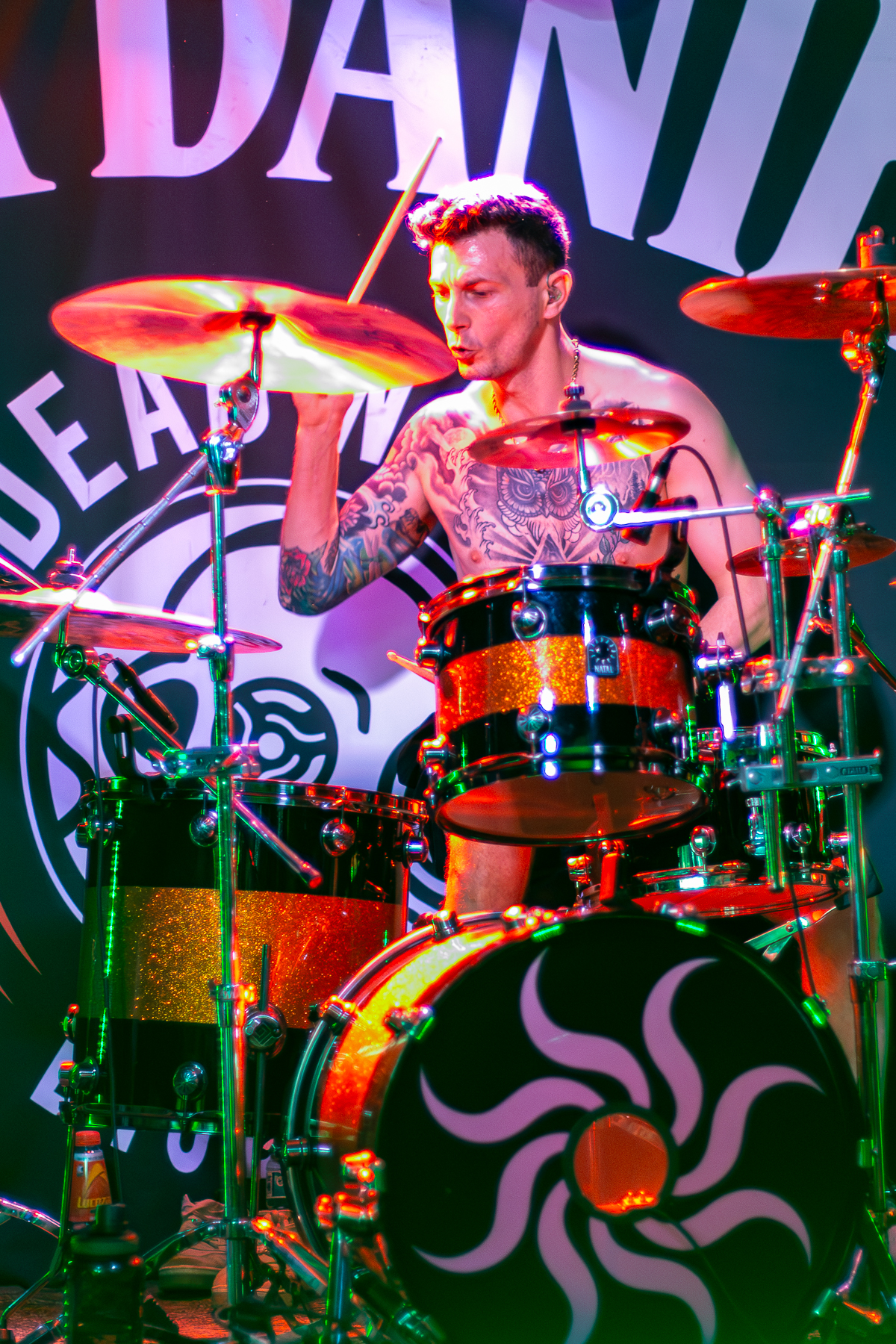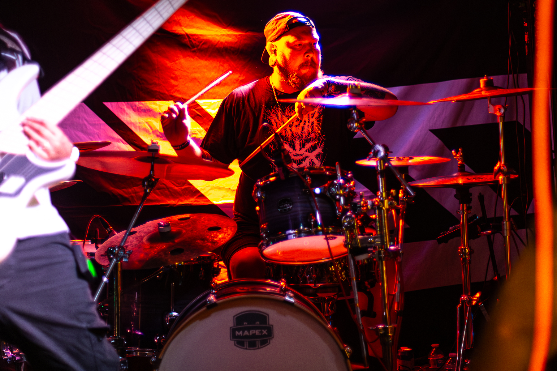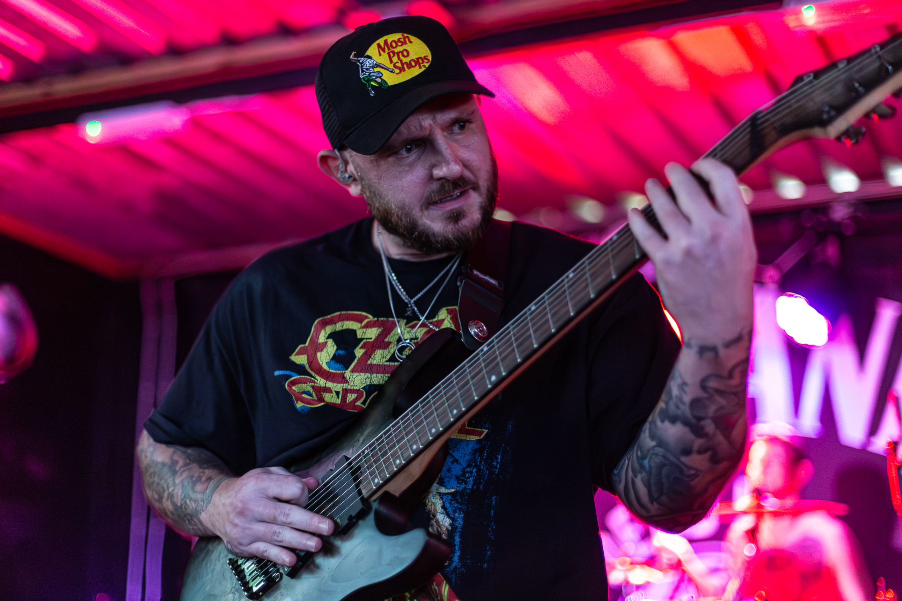 Birmingham’s very own Overthrown have dedicated their set to the late Ozzy Osbourne tonight with “Mama I’m coming home” as they’re walking on song. Their high-energy set has the crowd up and jumping along with mosh pits and complete clapping along, and Overthrown bring our first wall of death of today’s festival. They are loud, in charge and have the crowd under their power. Bringing in multiple moshpits throughout their set, and they sound incredible while doing it!