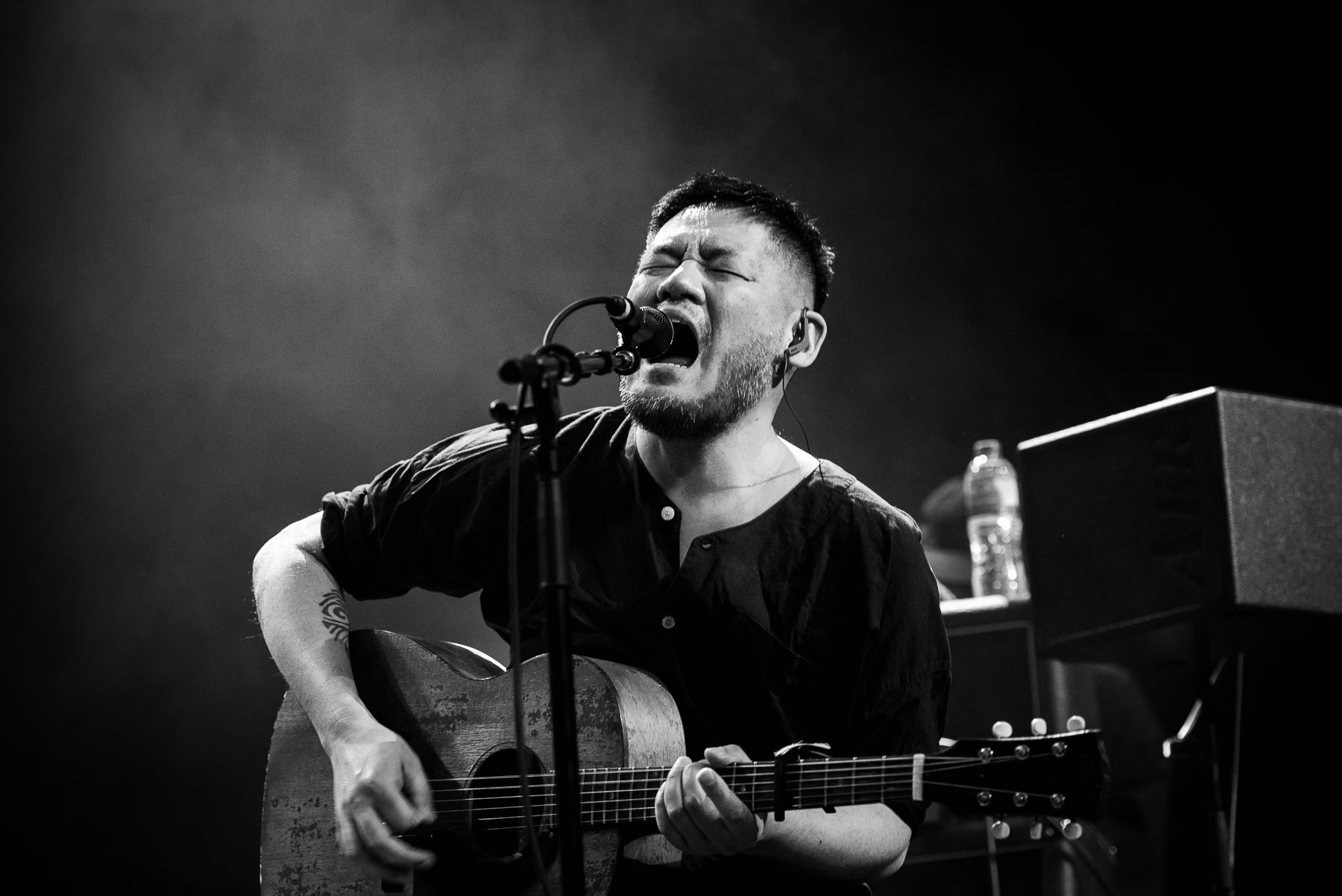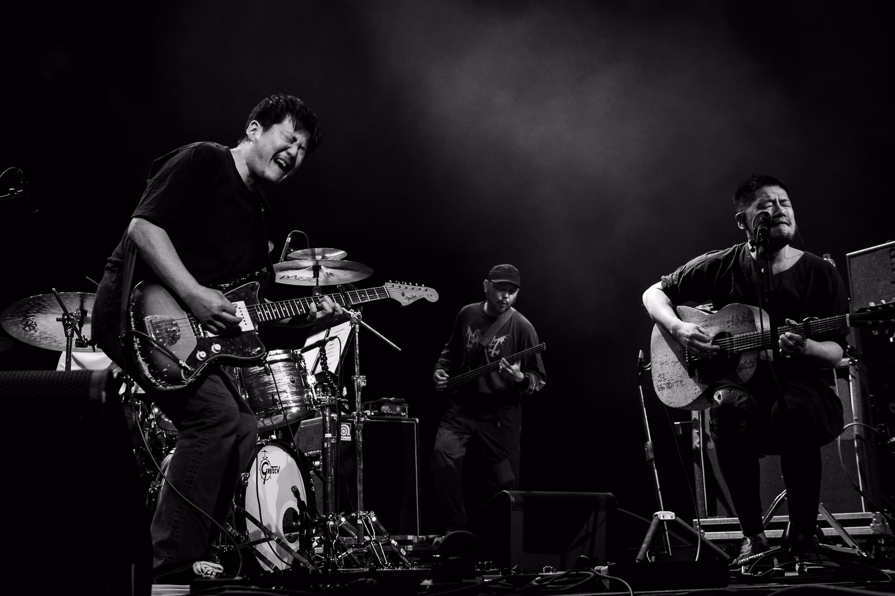 toe’s musicianship is unrivalled. They created a small semi-circle in the middle of Troxy’s large stage, turning the 3,600-cap venue into a more intimate affair, with all musicians huddled together, feeding off one another’s energy. Yamazaki Hirokazu’s acoustic guitar and Mino Takaaki’s electric guitar danced together exquisitely, with their riffs interlocking in a way that they only can when you’ve played with someone for quarter of the century and can read them like a book. Kashikura Takashi’s precise drumming gave a heartbeat to each song, and was often punctuated by impressive, soaring solos. Yamane Satoshi’s bass glued it all together.