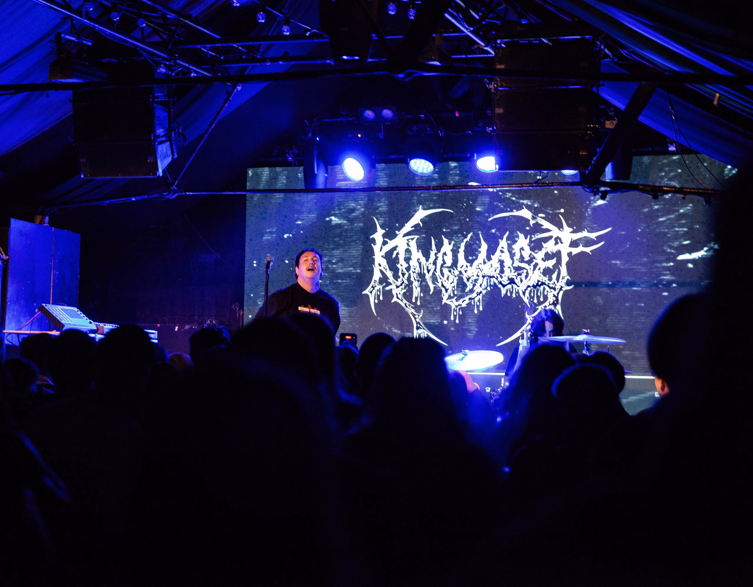 Their set consisted of the most electronically harsh-sounding instrumentals I’ve ever heard; they blend and bend genres while keeping the mood powerful and deep. The singer screams so intently and gutturally that it surprises people with its unexpected intervals. Eerie backing tracks of voice-overs give the set an even creepier sound. Their performance remains terrifying, in the best kind of way, while stage lights turn a harsh red, lots of staccato beats can be heard, and the singer climbs into the crowd, enticing and connecting with fans who are moshing and raving gleefully.