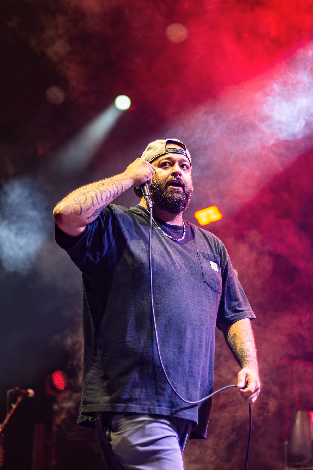 Next up is American Lionheart bringing out our hard, beatdown band of the evening, with most of the set focusing on their latest recordings of Welcome to West Coast 1, 2 & 3. Their high energy captures the crowd, who have filled the venue. Their high energy is shown throughout each member of the band and including two barrels that produce smoke throughout perfectly timed intervals, featuring songs throughout the set of “Death Comes In 3’s”, “Burn” and “Keep Talking” as well as two perfect covers of Limp Bizkit’s “Break Stuff” and Beastie Boys’ “Fight For Your Right”.